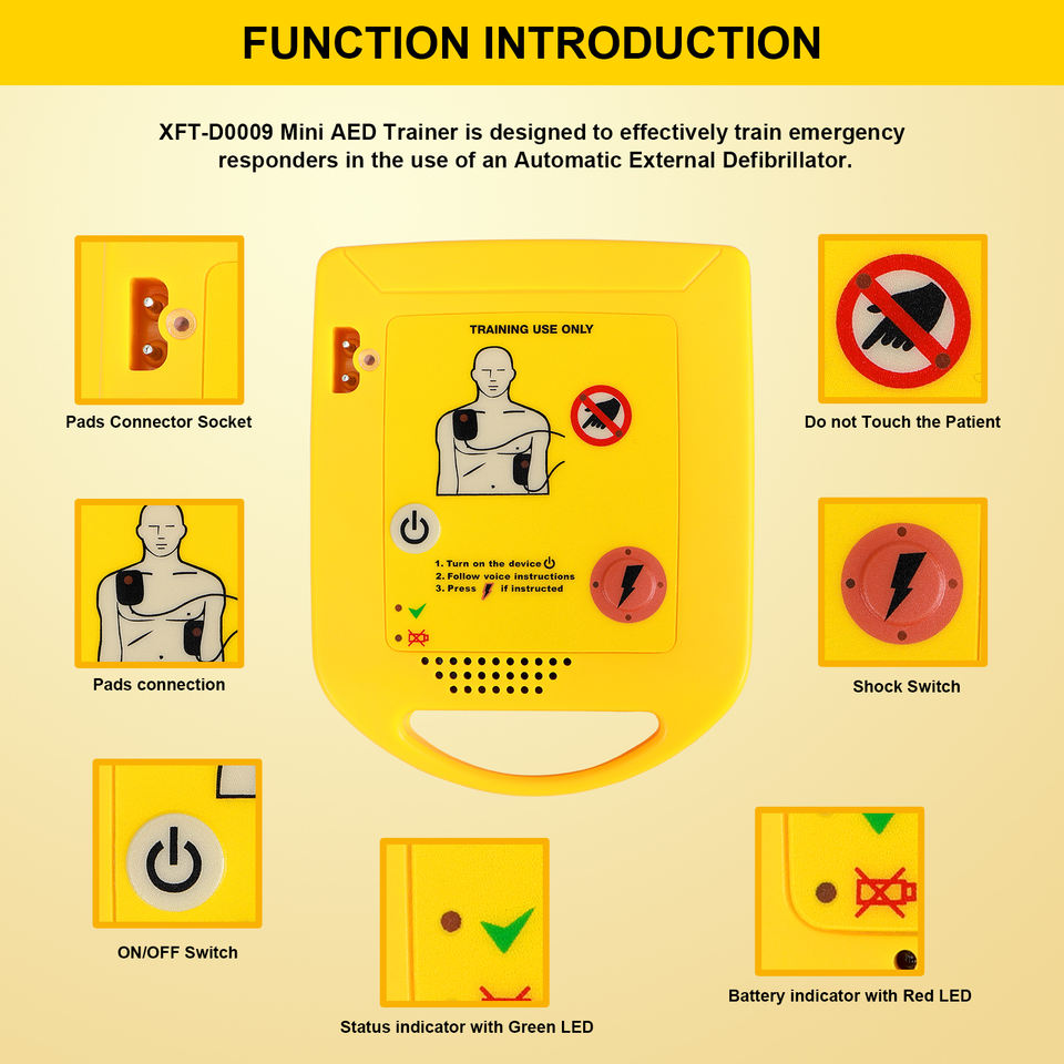Défibrillateur externe automatisé (DEA) portable XFT pas cher, mini simulateur multilingue pour formation RCP, certifié CE/FCC, garantie 2 ans