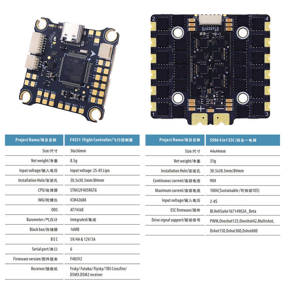 XFlight Hobby HAKRC F4551 Contrôleur de vol Aio S90A 4 en 1 ESC Contrôleur de drone de vitesse électrique Pile pour composants de drone FPV