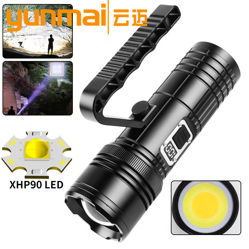 Lampe de poche XHP90 COB avec affichage numérique, éclairage extérieur rechargeable haute puissance