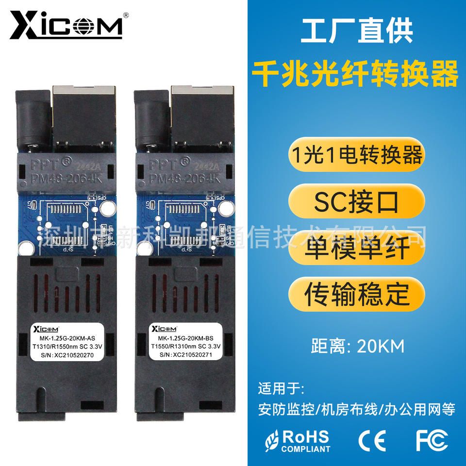 Convertisseur Fibre Optique Gigabit XICOM SC Monomode 20KM Mini Carte PCBA pour Réseau de Surveillance