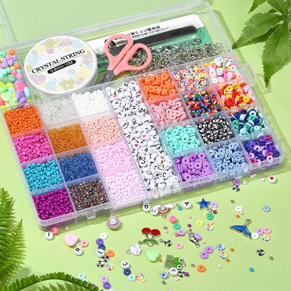 Kit de perles en verre Heishi en polymère XIMAI, perles en forme de lettres, pour la fabrication de bijoux DIY, bracelet, ensemble de fabrication de bijoux et cordes élastiques