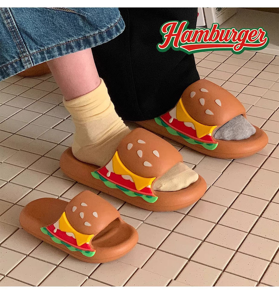XIXITIAO - Claquettes amusantes pour la famille, hamburger, assorties pour les parents et les enfants, en EVA, antidérapantes, semelle épaisse, pour l'intérieur et l'extérieur