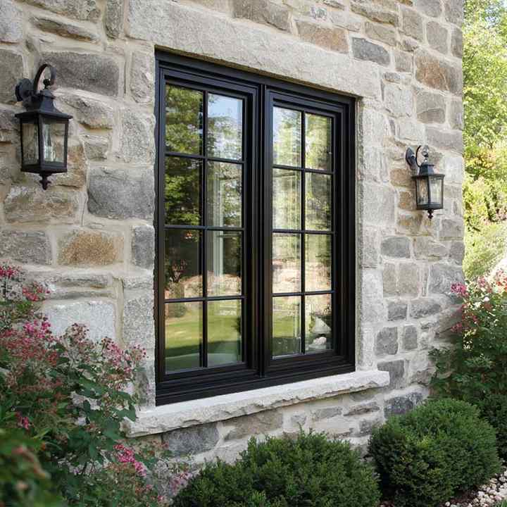 Fenêtre à battant XIYATECH, cadre étroit, design minimaliste moderne, personnalisable, revêtement en poudre noir, utilisation en appartement, verre