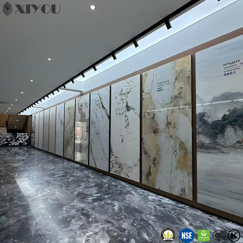 Dalles de porcelaine grand format XIYOU, design populaire, aspect marbre, dalles en pierre frittée, finition brillante pour murs et sols