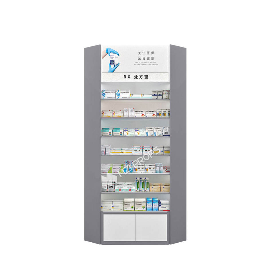 Armoire de magasin de pharmacie XJMS-AW1-MB-08 la nouvelle annonce armoire à colonne ronde étagère de magasin de pharmacie pour support de conception de magasin