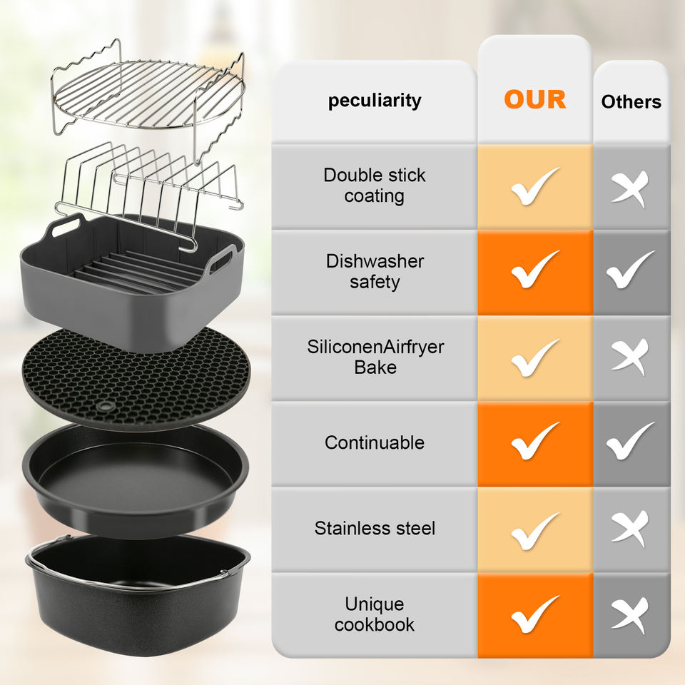 Friteuse à air électrique XL 3.1-4.0L Gold avec puissance de 8 pouces et ensemble d'accessoires pour frites sans huile à usage domestique