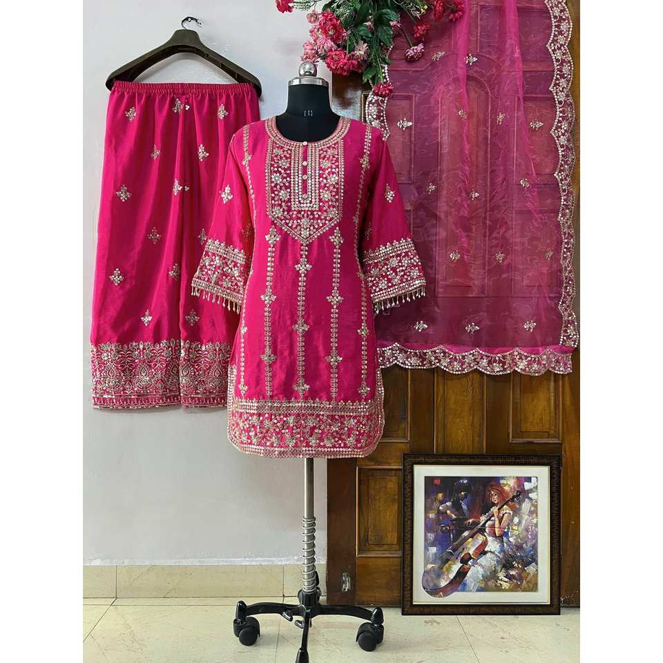 Ensemble haut-bas et dupatta taille XL, magnifique tenue de soirée, tissu en mousseline, manches trois quarts