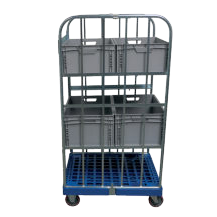 Chariot de préparation de commandes avec étagère intermédiaire capacité de charge 600 kg roues polyamide galvanisé bleu
