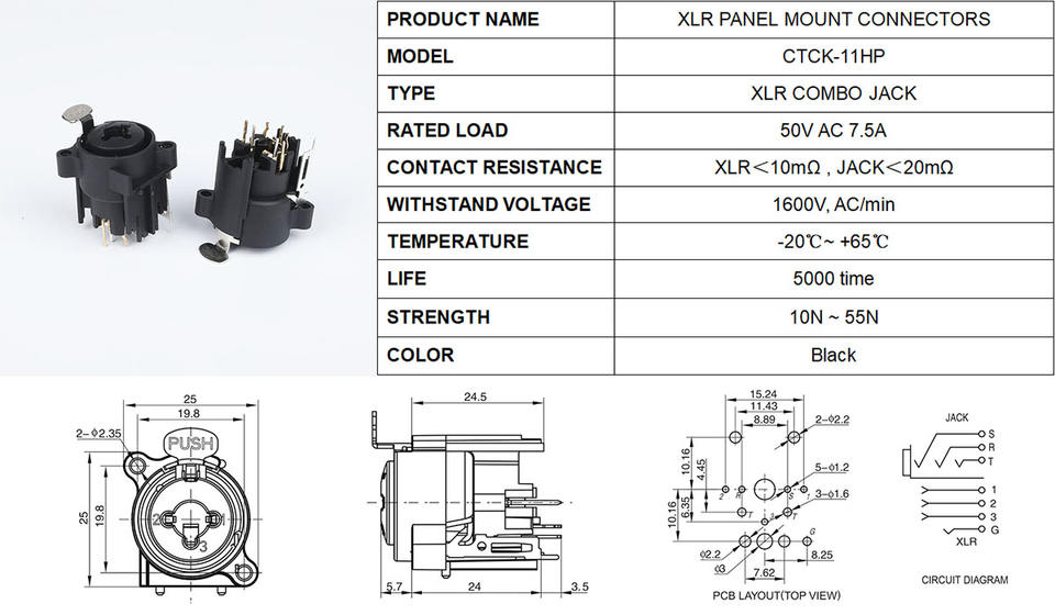 Operating Force:XLR:10N~50N JACK: 5N~30N