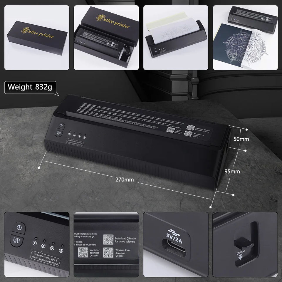 XNET MHT-P8008 Portable Sans Fil Imprimante De Tatouage Imprimante Thermique Transfert Blue tooth USB Mobile Machine Texte PDF Document Maker
