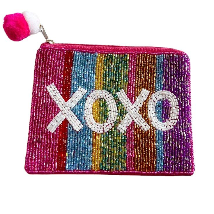 XOXO Pochette à monnaie en perles multicolores personnalisée pour femmes Portefeuille tendance magnifique porte-monnaie en perles pour Noël et les fêtes
