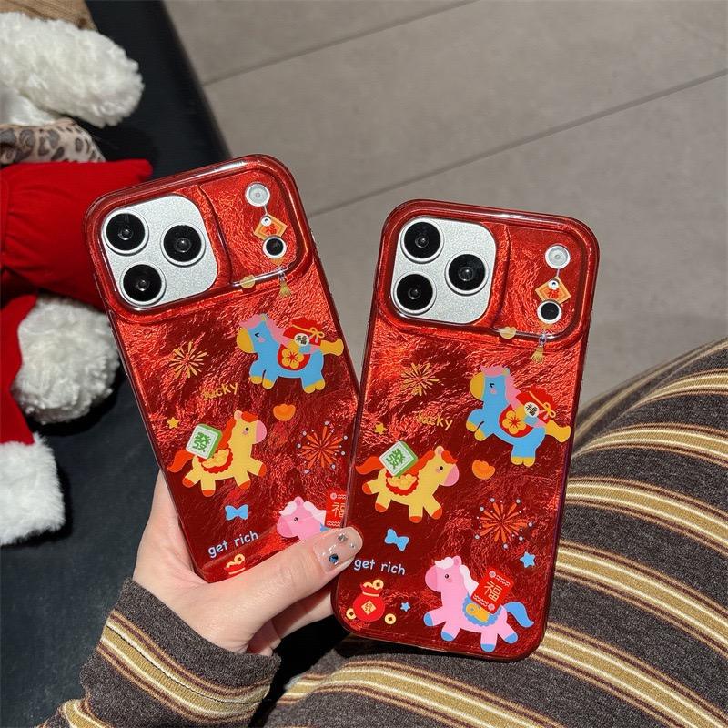Coque de protection XP1247 pour iPhone 17 Pro Max, compatible Apple 16/15/14, motif feux d'artifice sur fond rouge vin, motif trois petits poneys