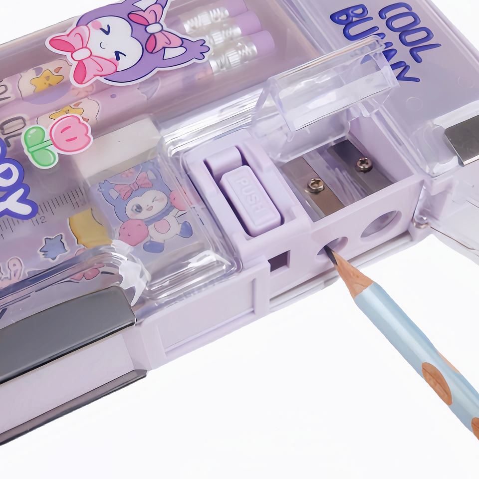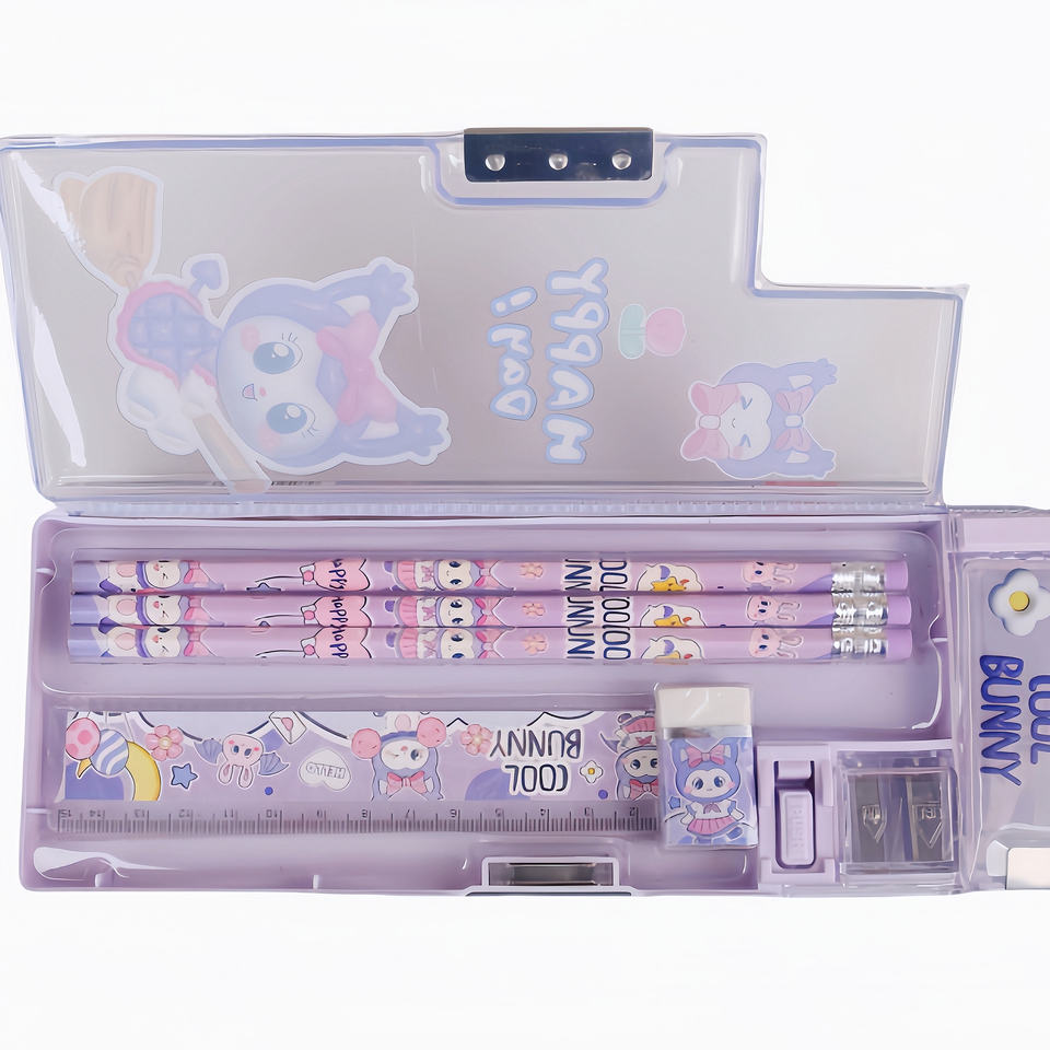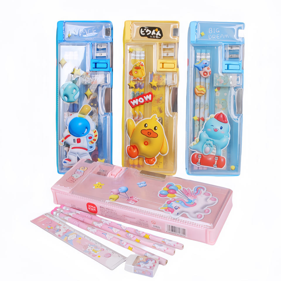 Ensemble de papeterie de haute qualité XPM, nouveau modèle, règle, trousse à crayons multifonctionnelle double face avec taille-crayon pour enfants