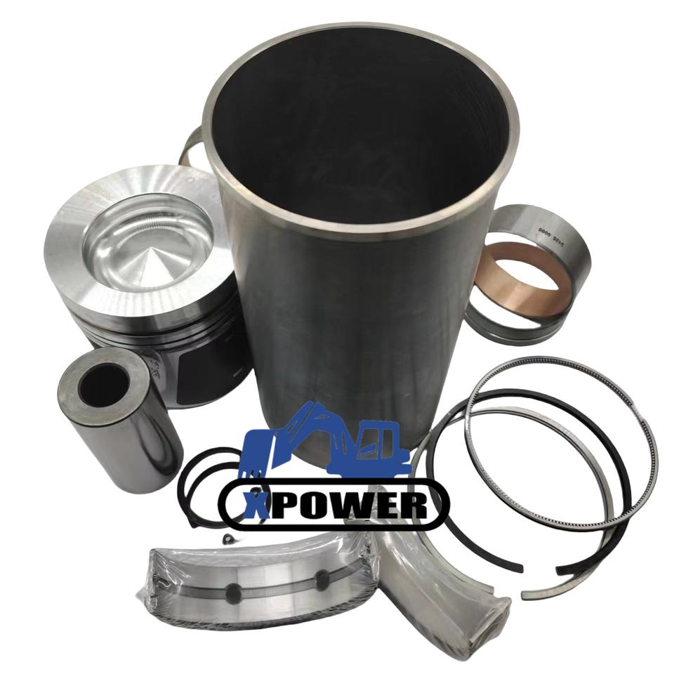 Kit de chemise de cylindre XPower New D6E avec segments de piston pour machines de construction EC160B EC210B, noir/argent, garantie 6 mois