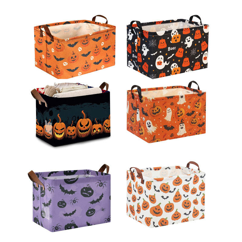 XR Cross-Border Halloween Rectangle Eco-Friendly Foldable Storage Basket Cartoon Toy Clothing Box Multifunctional Canvas
