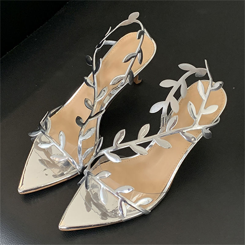 Collection Été-Automne XSD Factory : Sandales de mariée à talons hauts à bout ouvert, à enfiler, en cuir métallisé, design tendance à pois dorés