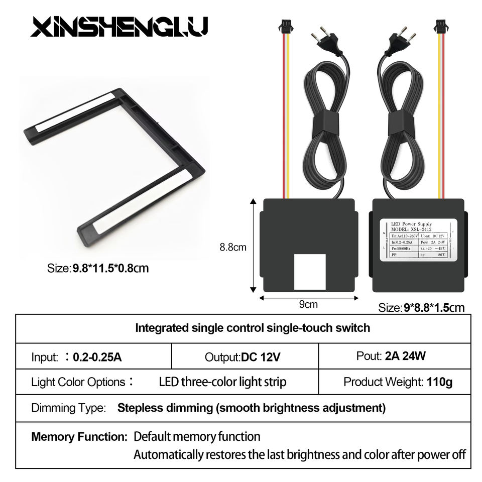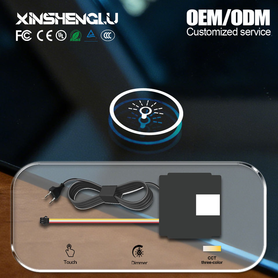 Interrupteur tactile intelligent XSL OEM ODM 12V avec pilote intégré, CCT réglable 3000K-6500K, gradation progressive et mémoire pour miroir