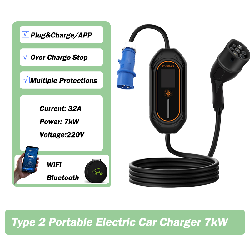 Chargeur de véhicule électrique portable XTEVSE 32A 7KW à courant alternatif rapide avec réservation de temps et courant réglable Type 2 pour l'Europe