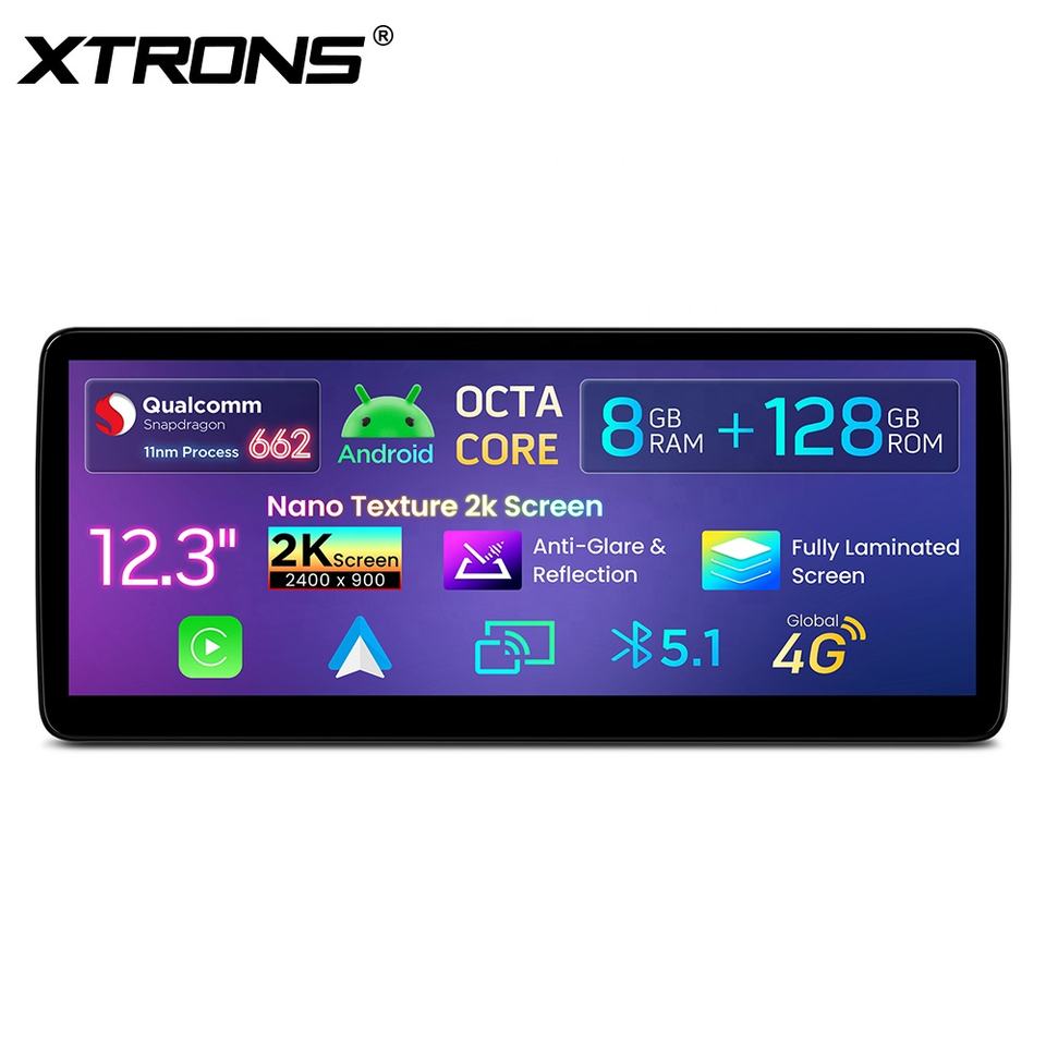XTRONS Autoradio multimédia Android 12,3 pouces pour Mercedes-Benz Snapdragon 662 Octa Core 8+128 Go avec écran Nano Texture 2K