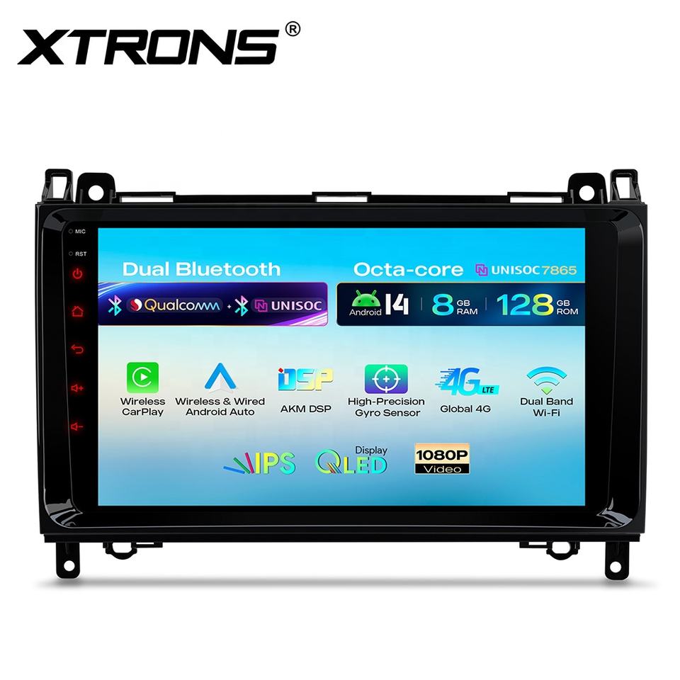 Système de navigation stéréo pour voiture Android XTRONS 9 pouces pour Benz/Volkswagen UNISOC 7865 Dual BT Écran QLED 8+128 Go Global 4G AKM DSP