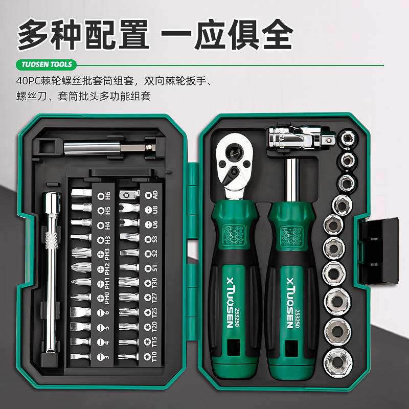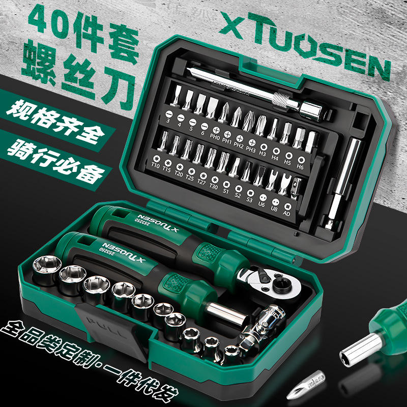 XTUOSEN – jeu de tournevis à cliquet, 40 pièces, embouts magnétiques, kit d'outils combinés Phillips et à tête plate pour la réparation de vélos