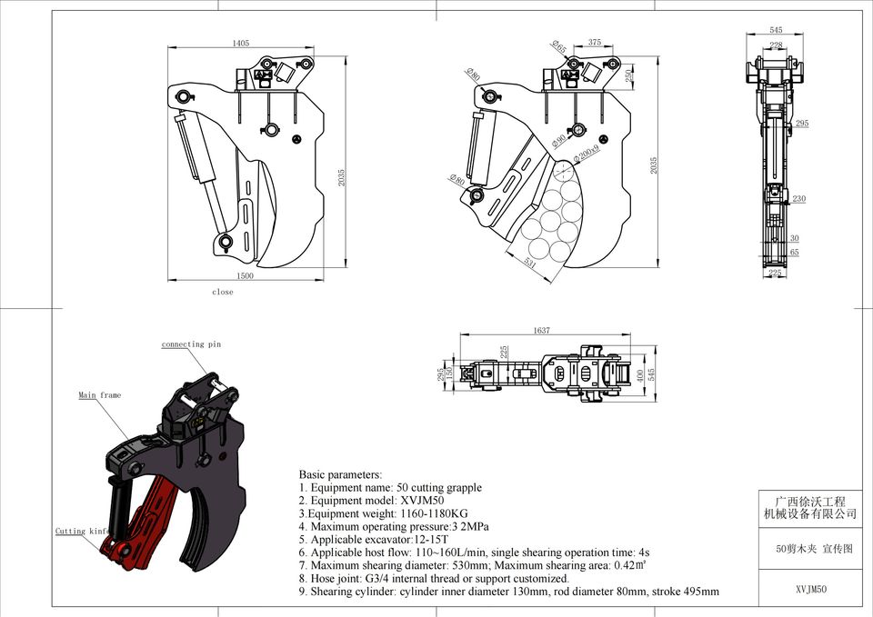 XUVOL Accessoire pour excavatrice, coupe-bois pour eucalyptus, pin, palmier, couteau forestier, Max. Cisaille hydraulique pour arbres de 530 mm