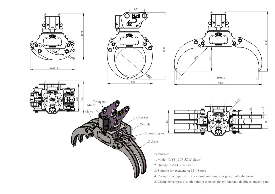 Grapple Type:single cylinder/bunching grapple/doubble link