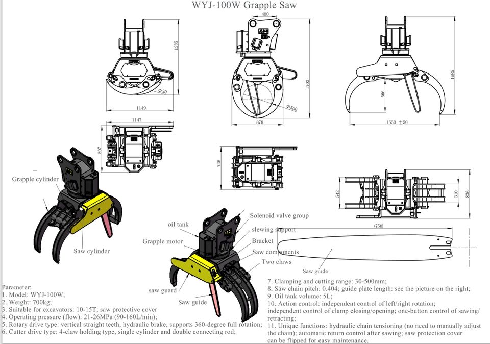 Mots-clés:Scie à grappin pour machines forestières, coupe à longueur