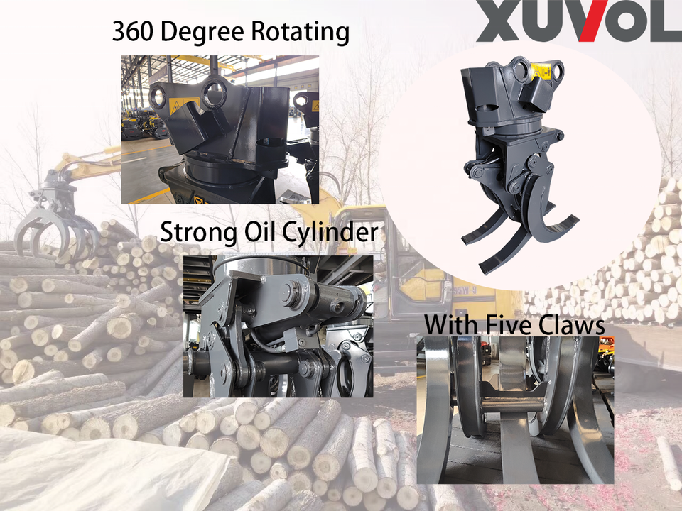 XUVOL OEM/ODM Godet WYJ100Z 5-9 tonnes pour excavatrice, grappins rotatifs hydrauliques à 360°, accessoires de machines de construction, grappin à bois