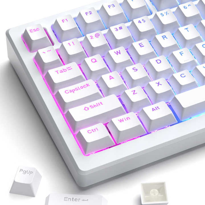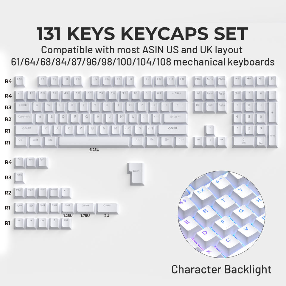 XVX Keycaps White 131-Key Mechanical Keyboard Side-Printed OEM Profile PBT Double-Shot Keycap Fit Most ANSI PC
