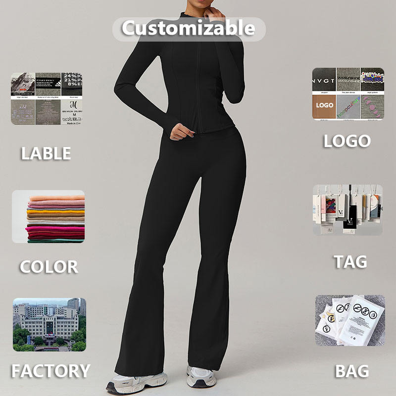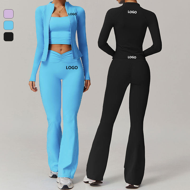 XW-TZ9141-1 Veste d'entraînement Flare, leggings de sport plissés à l'avant, leggings push-up, ensembles de yoga de fitness taille haute pour femmes