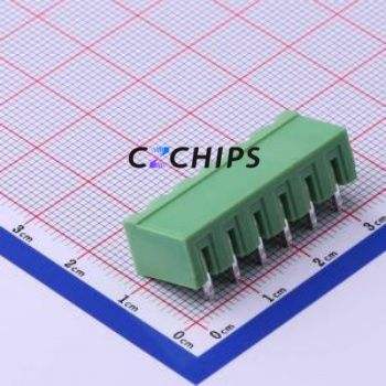 XY2500R-B-5.00-6P Plug-in Terminal Block Bent Lead Through Hole,P=5mm Connector Board-to-Board / Socket - Closed 1x6P 5mm Green