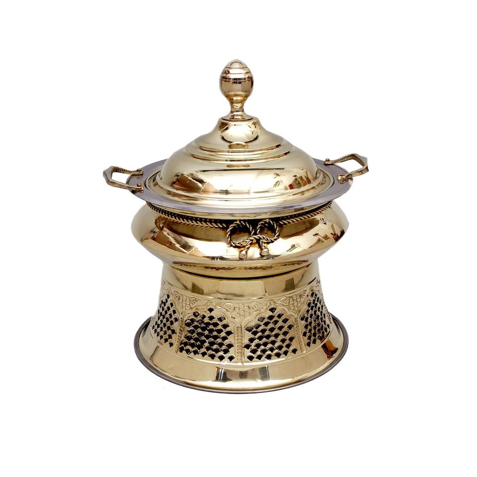 Chauffe-plats pour buffet xclusive Design Pot décoratif contenant des aliments plaqué or forme ronde chauffe-plats fournisseur par l'Inde
