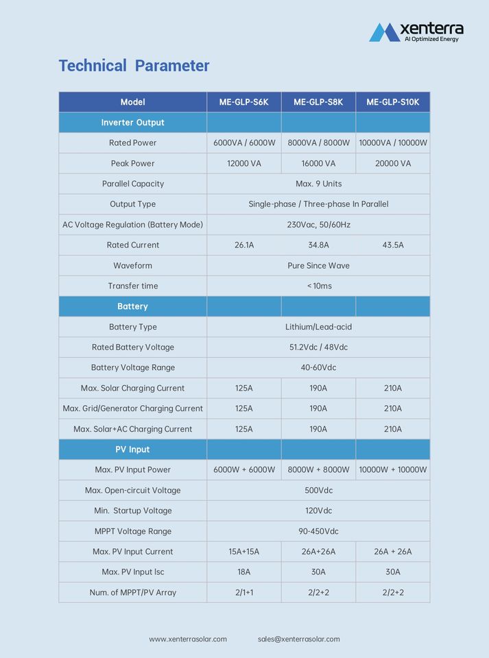 Générateur hybride à onduleur Xenterra 8 kW IP65, onduleur 8 kW 48 volts, onduleur solaire domestique à onde sinusoïdale pure 48V 220V 230V 8000W