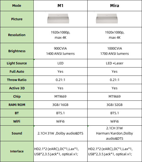 Nom du projecteur 1080P:Xgimi M1 et MIRA