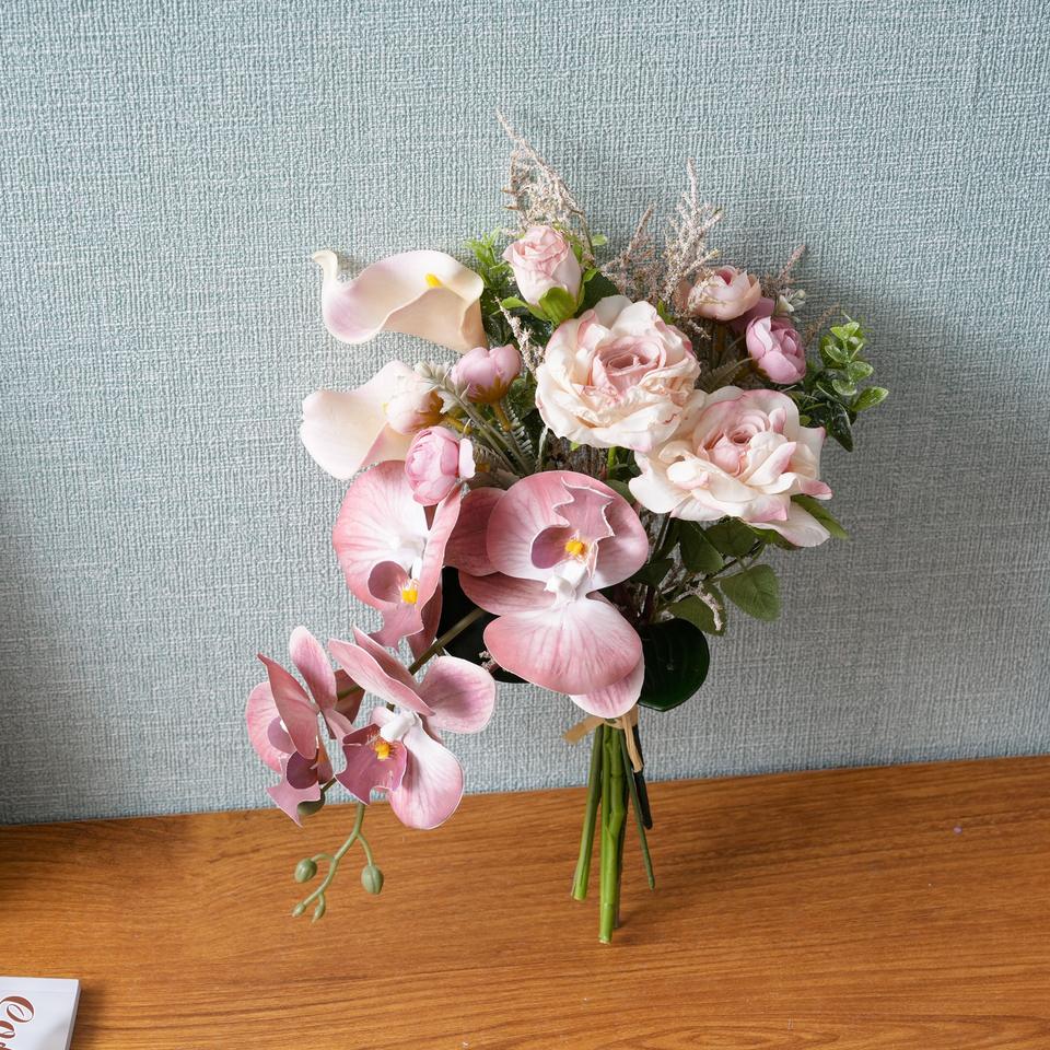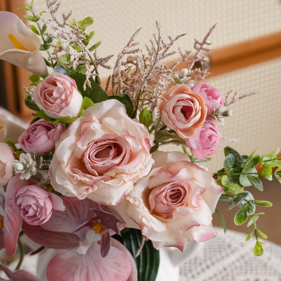 Xia Mu Qing Chuan, fleur artificielle en plastique rose, écriture manuscrite, décoration murale, bouquet de mariage pour la maison et l'extérieur