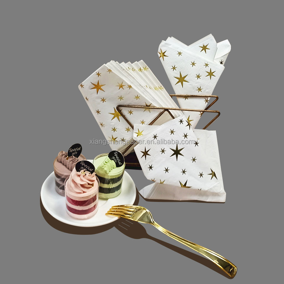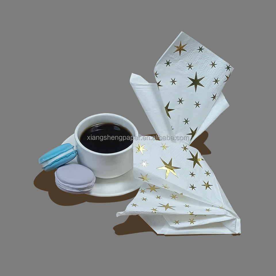 Xiangsheng serviettes en papier personnalisées de qualité supérieure à 3 plis motif étoile dorée 1/6 plis pour l'utilisation de la serviette de fête de Noël et de vacances
