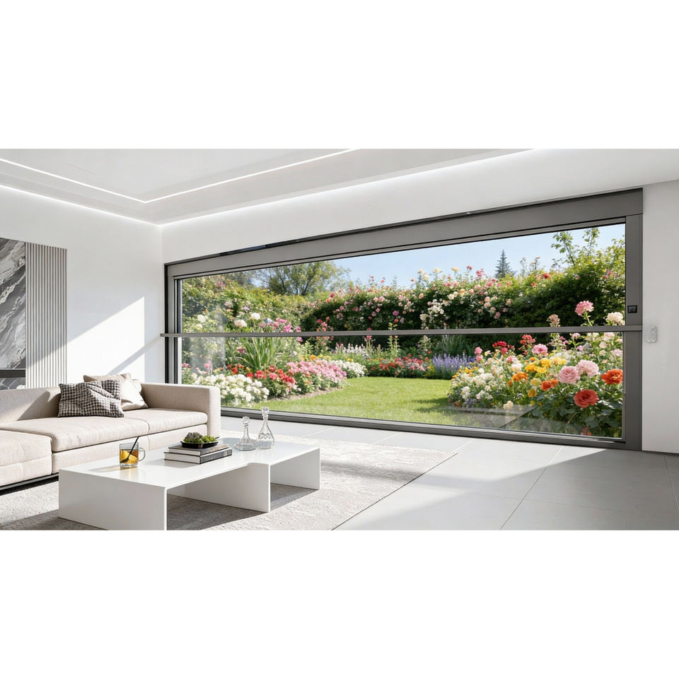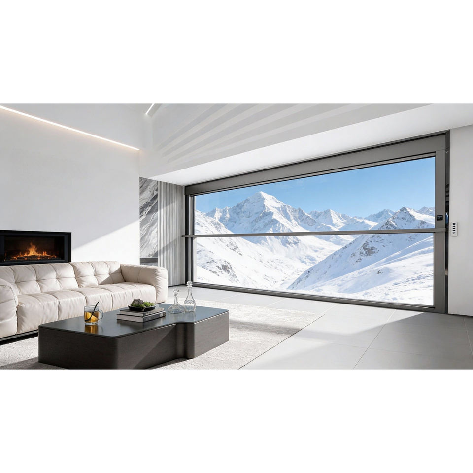 Fenêtres coulissantes verticales automatiques modernes XiaoDe, résistantes aux ouragans, fenêtres électriques intelligentes à levage et glissière pour villa et appartement