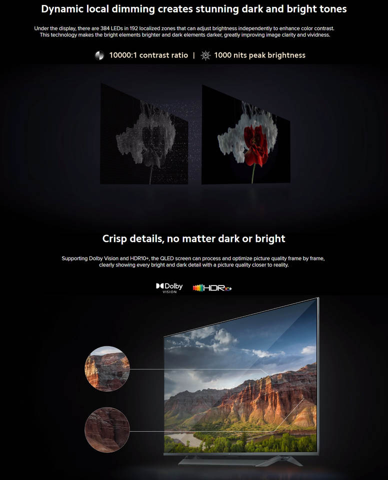 Xiaomi Mi TV Q1 75 pouces 3840x2160 résolution 4k 1080P