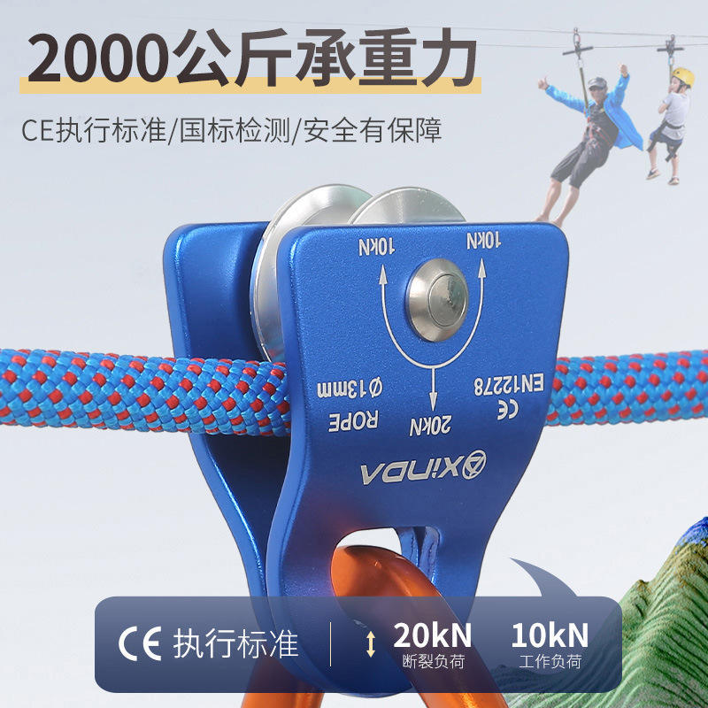 Poulie d'escalade Xinda pour corde de 13 mm, charge de 20 kN, équipement de sauvetage pour l'alpinisme en plein air