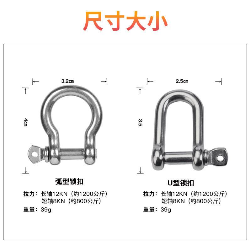Boucle en métal Xinda en forme d'arc en U 3,2x4cm 2,5x3,5cm pour bracelet en paracorde, artisanat DIY, attache de sécurité