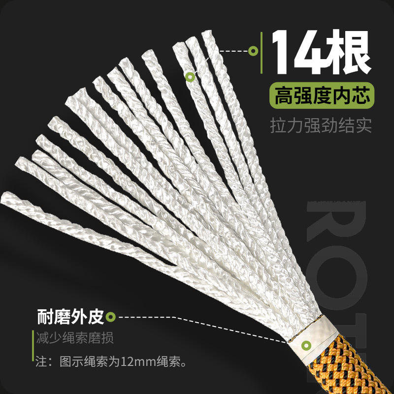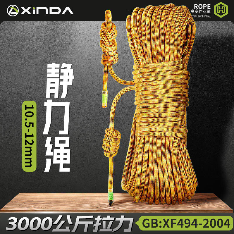 Corde statique d'alpinisme Xinda 10,5 mm 12 mm en nylon pour la descente en rappel, la sécurité et les travaux en altitude, résistante à l'usure