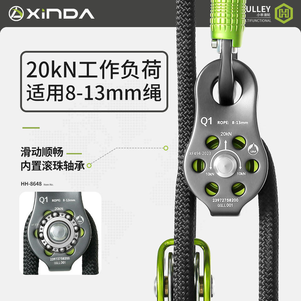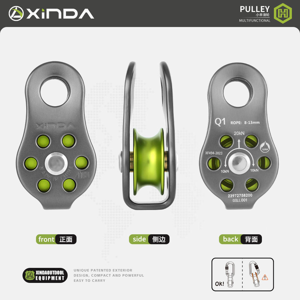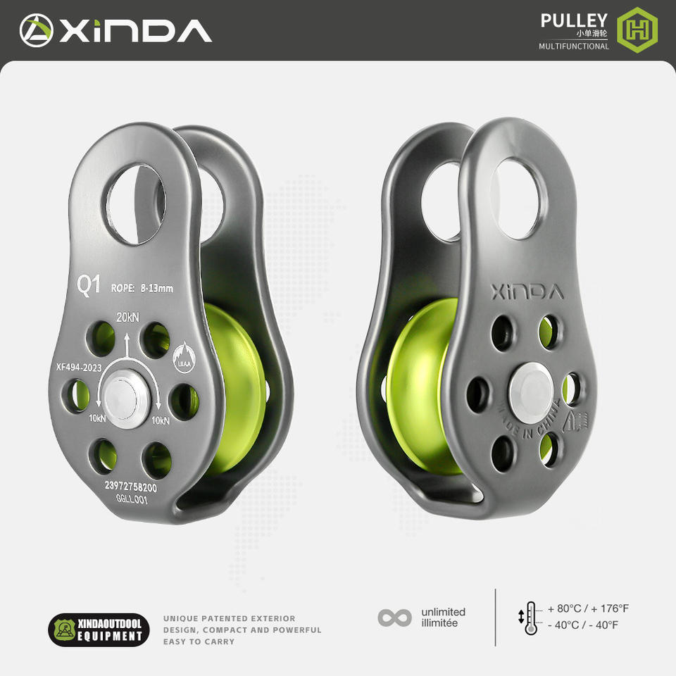 Poulie Xinda Q1 pour corde de 8-13 mm, charge de 20 kN, équipement de sauvetage et d'escalade en plein air