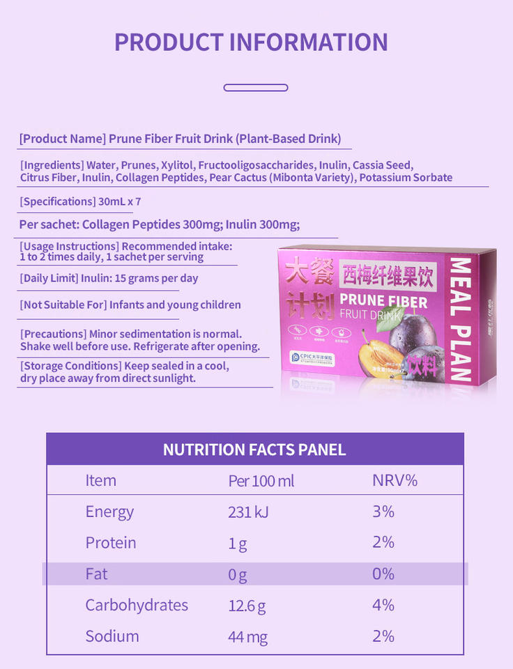 Nom du produit:Boisson à base de fibres de pruneaux