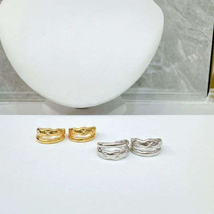 Xinfly Clip d'oreille double couche en or 18 carats (Au750) à motif diamant, modèle femme, polyvalent, pour usage quotidien, sans perçage, mariages