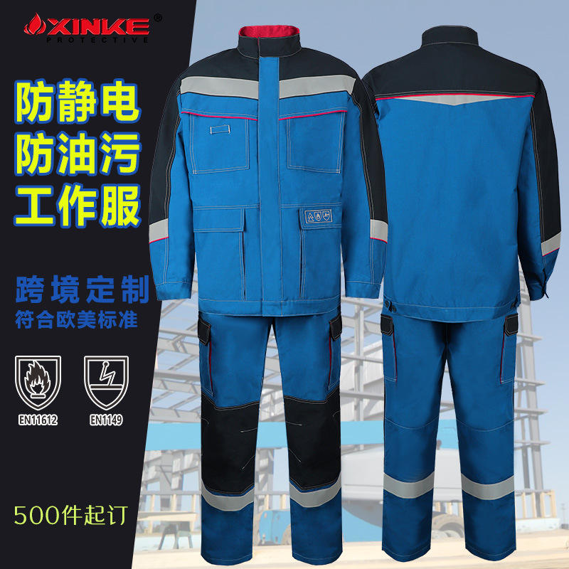 Ensemble de vêtements de travail de protection Xinke, polyester ignifuge et antistatique, pour la sécurité des ateliers et usines