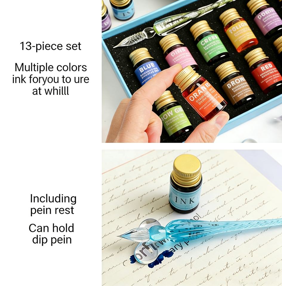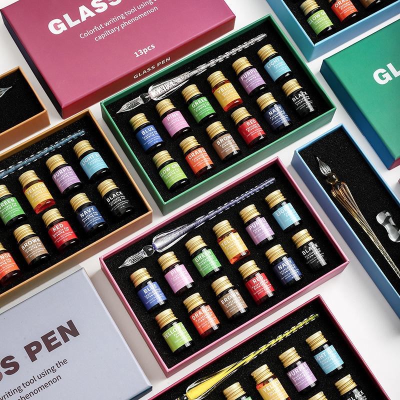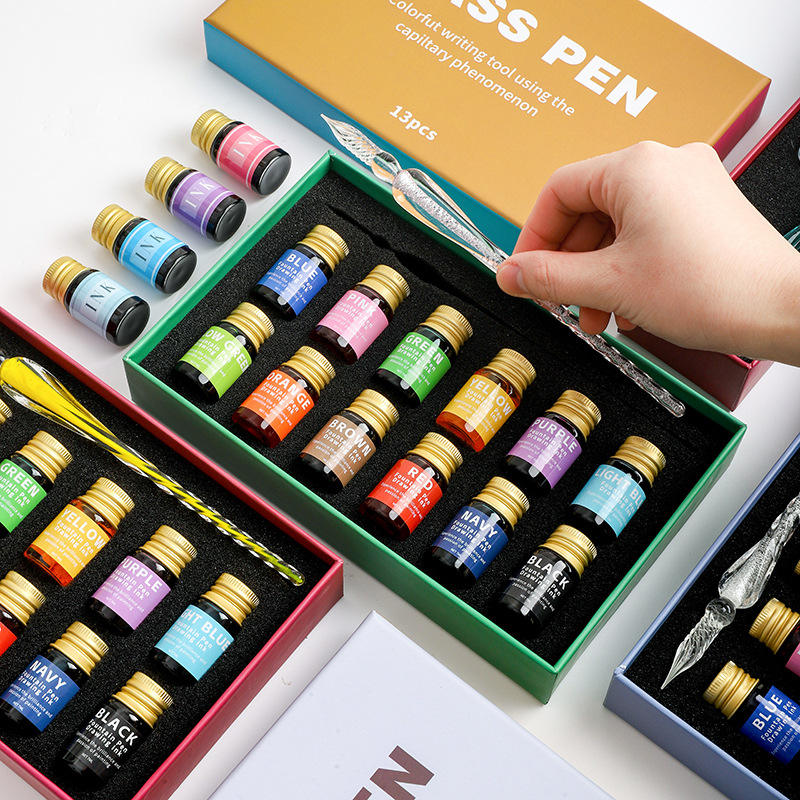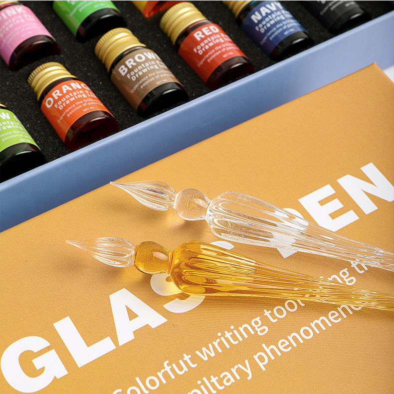 Xinyiart – Ensemble de stylos de calligraphie en verre, stylo signature en cristal, outil de dessin à encre goutte à goutte pour signatures artistiques