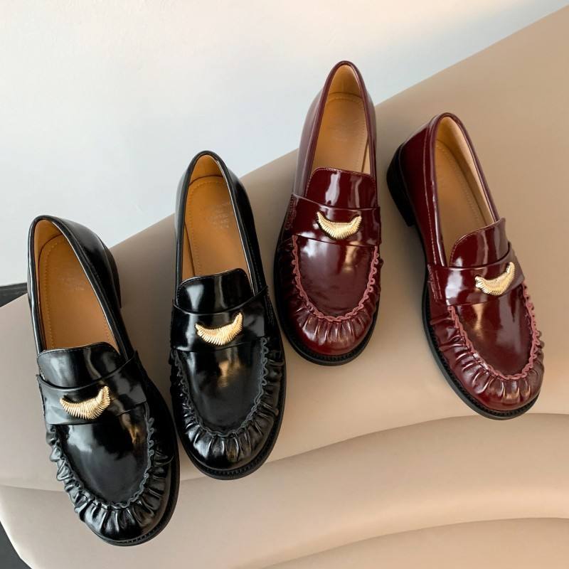 Mocassins plats en cuir véritable Xinzirain avec logo personnalisé, chaussures décontractées à enfiler avec boucle sur le dessus
