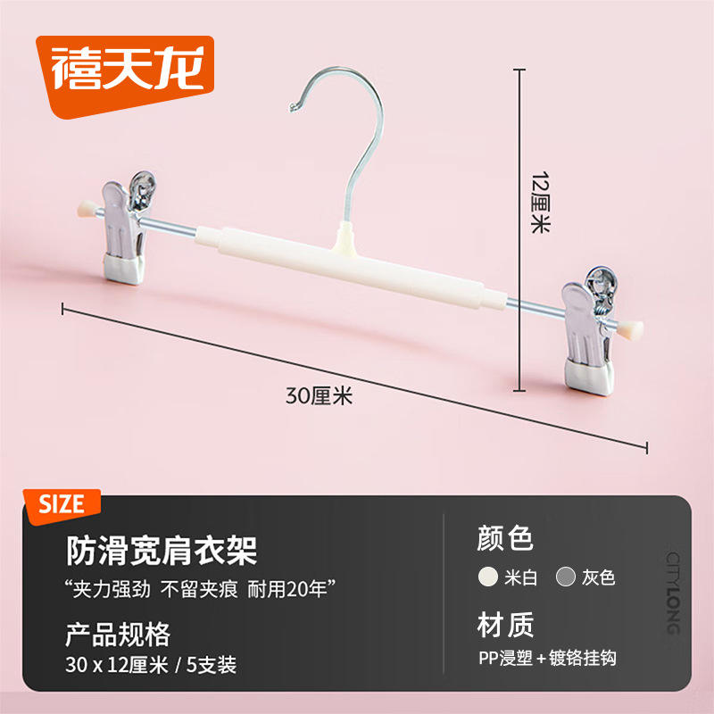couleur:Cintres à pantalons plastifiés J-9645 (lot de 5, blanc cassé)