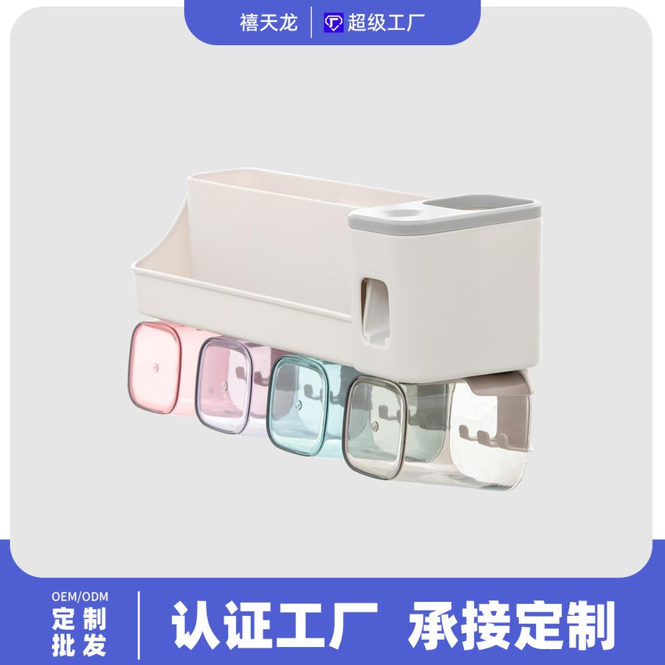Support de brosse à dents Xitianlong avec ventouse, double distributeur de dentifrice, étagère de rangement minimaliste pour salle de bain
